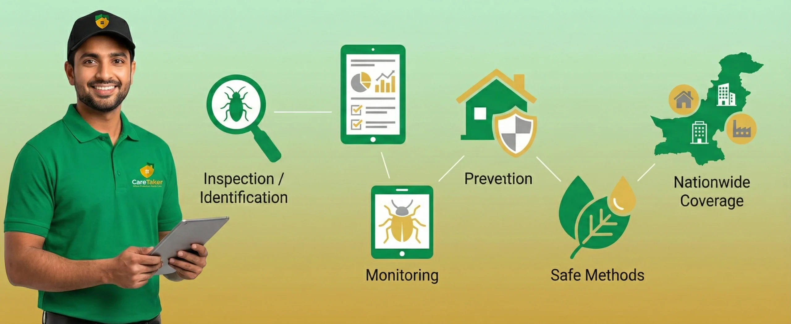 At Care Taker, we believe pest management is not just about treatment — it’s about long-term protection built on experience and care. Our Integrated Pest Management (IPM) programs are designed to identify, monitor, and prevent pest activity using safe, tested, and practical methods. With a team of skilled professionals and years of on-ground expertise, we deliver reliable, safe, and results-driven IPM services across Pakistan for homes, businesses, and industries.